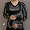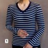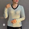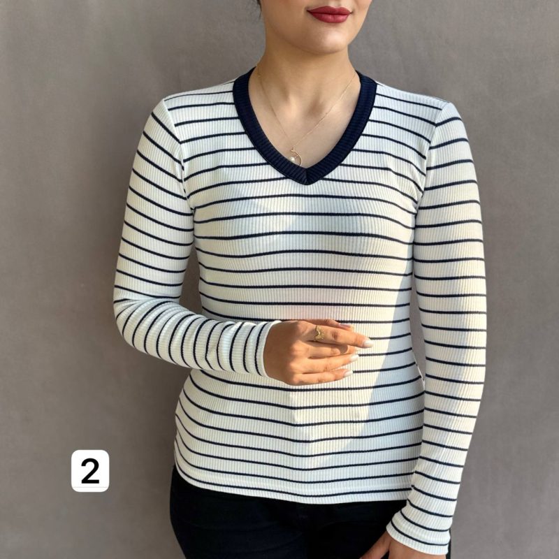 طراحی یقه هفت این مدل علاوه بر اینکه استایل رو شیکتر میکنه، باعث میشه ظاهر کشیدهتر و جذابتری هم داشته باشین. راهراه بودن پارچه جلوهای مدرن و پرطرفدار به بلوز داده که بهراحتی با شلوار جین، دامن یا شلوارهای راحتی ست میشه.